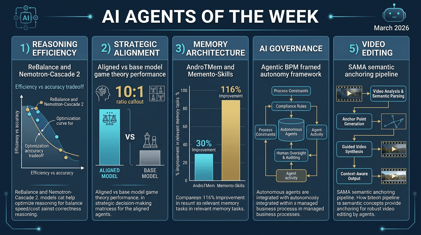 1h ago · 3 min read · Original article: AI Agents of the Week: Papers You Should Know About — LLM Watch by Pascal Biese, March 22, 2026 Summary This week’s LLM Watch rounds up five standout research papers at the frontier of AI agents, covering reasoning efficiency, stra...