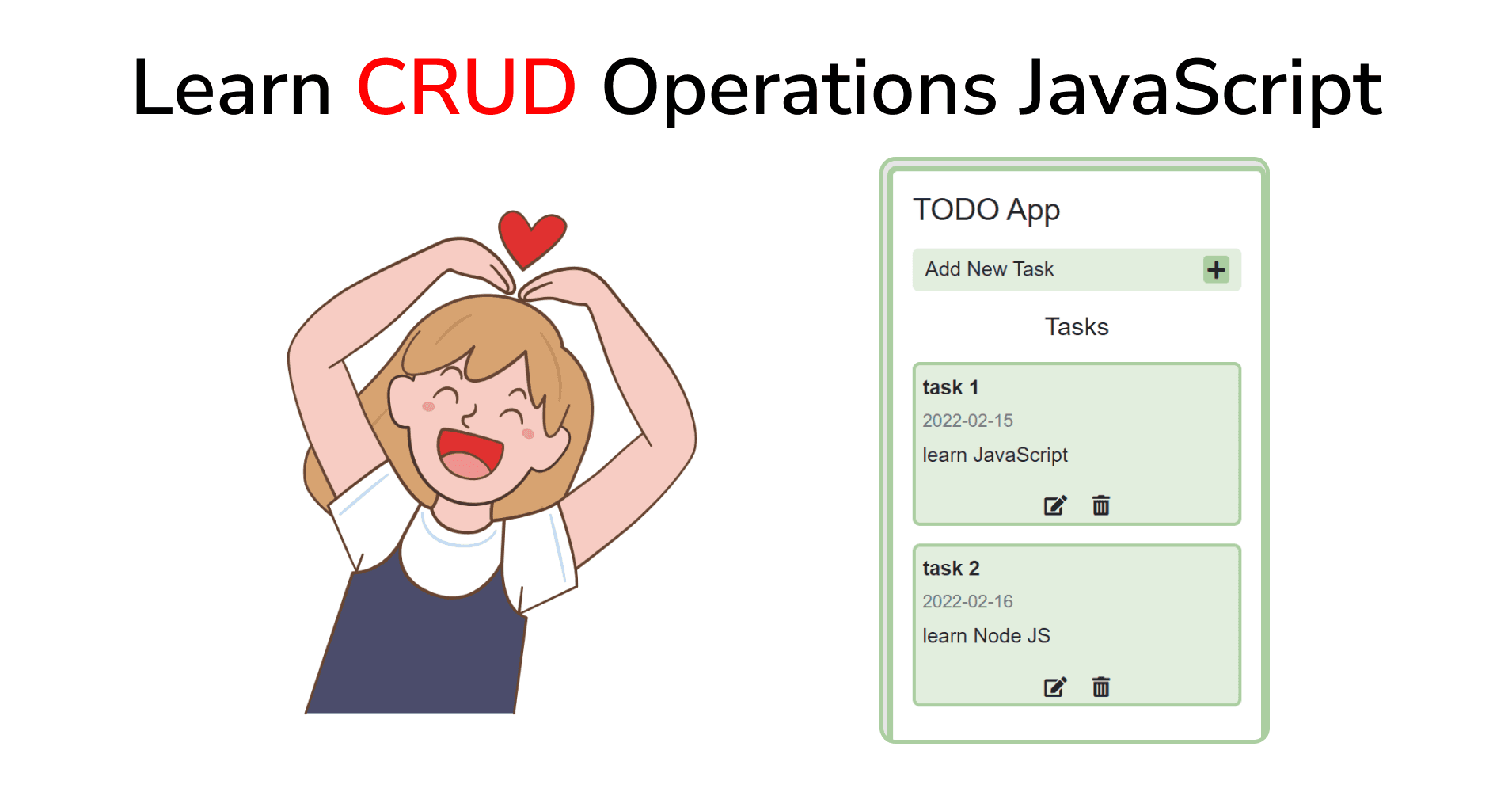 freecodecamp.orgLearn CRUD Operations in JavaScript by Building TODO APPToday we're gonna learn how to do CRUD Operations in JavaScript by making a Todo App. Let's get started 🔥 This is the app we're making today: Live preview GitHub Repository You can watch this tutorial on YouTube as well if you like 🎥 https://you...Apr 13, 2022·13 min read