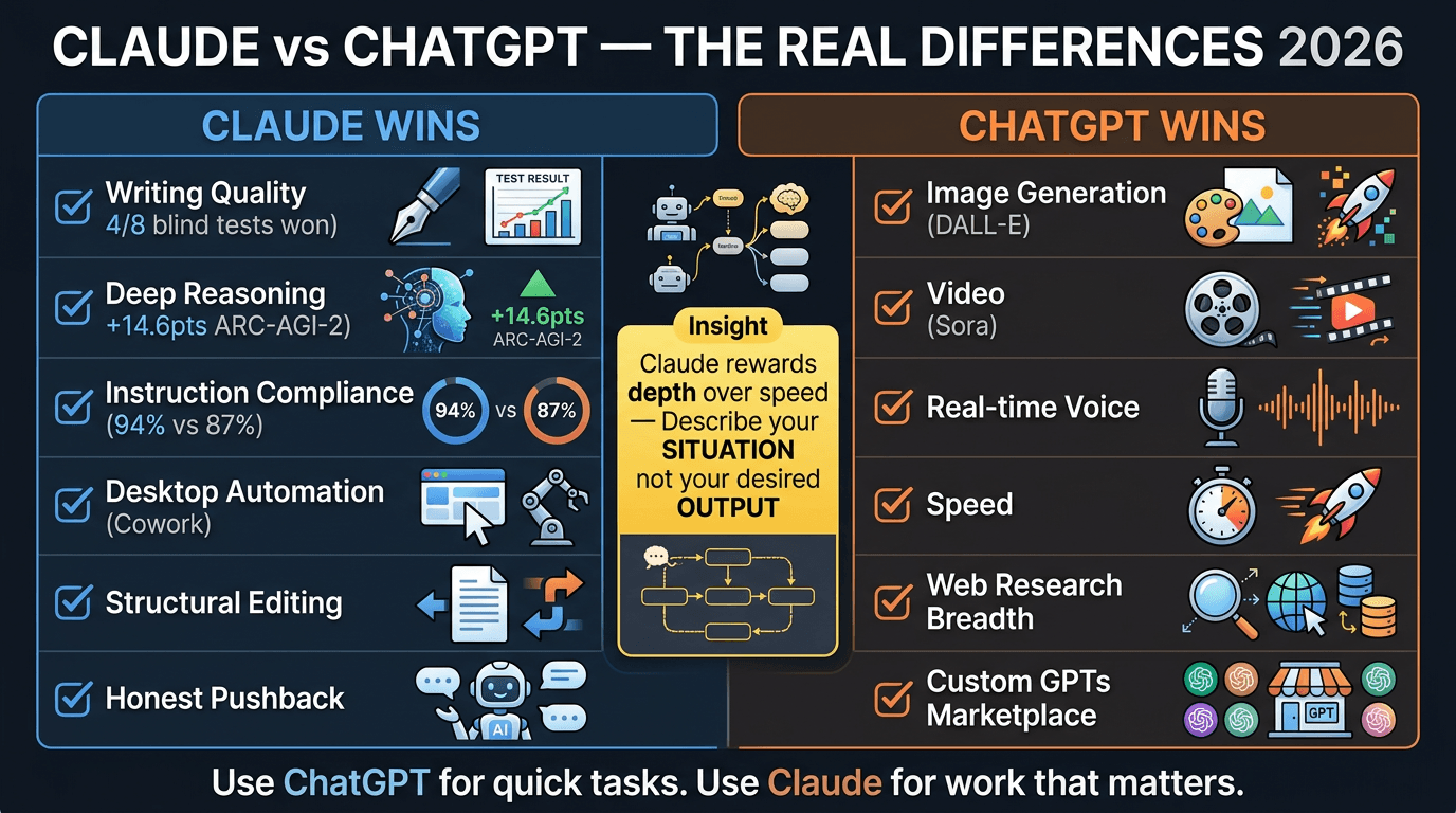 rzem.guruClaude won 4 of 8 blind writing tests, leads reasoning by 14.6 points, and follows instructions 94% of the time — here's why none of that helps if you prompt it like ChatGPTClaude won 4 of 8 blind writing tests, leads reasoning by 14.6 points, and follows instructions 94% of the time — here's why none of that helps if you prompt it like ChatGPT Original article: https://natesnewsletter.substack.com/p/millions-just-switc...4h ago·6 min read