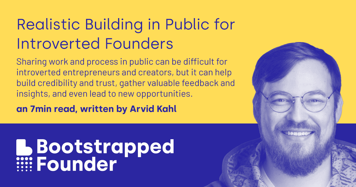 arvidkahl.hashnode.devRealistic Building in Public for Introverted FoundersAs an introverted entrepreneur or creator, sharing your work and process in public can be challenging. Many of us tend to hunker down and focus on our products or projects, often to the exclusion of building an audience or engaging with potential cus...Dec 24, 2022·9 min read