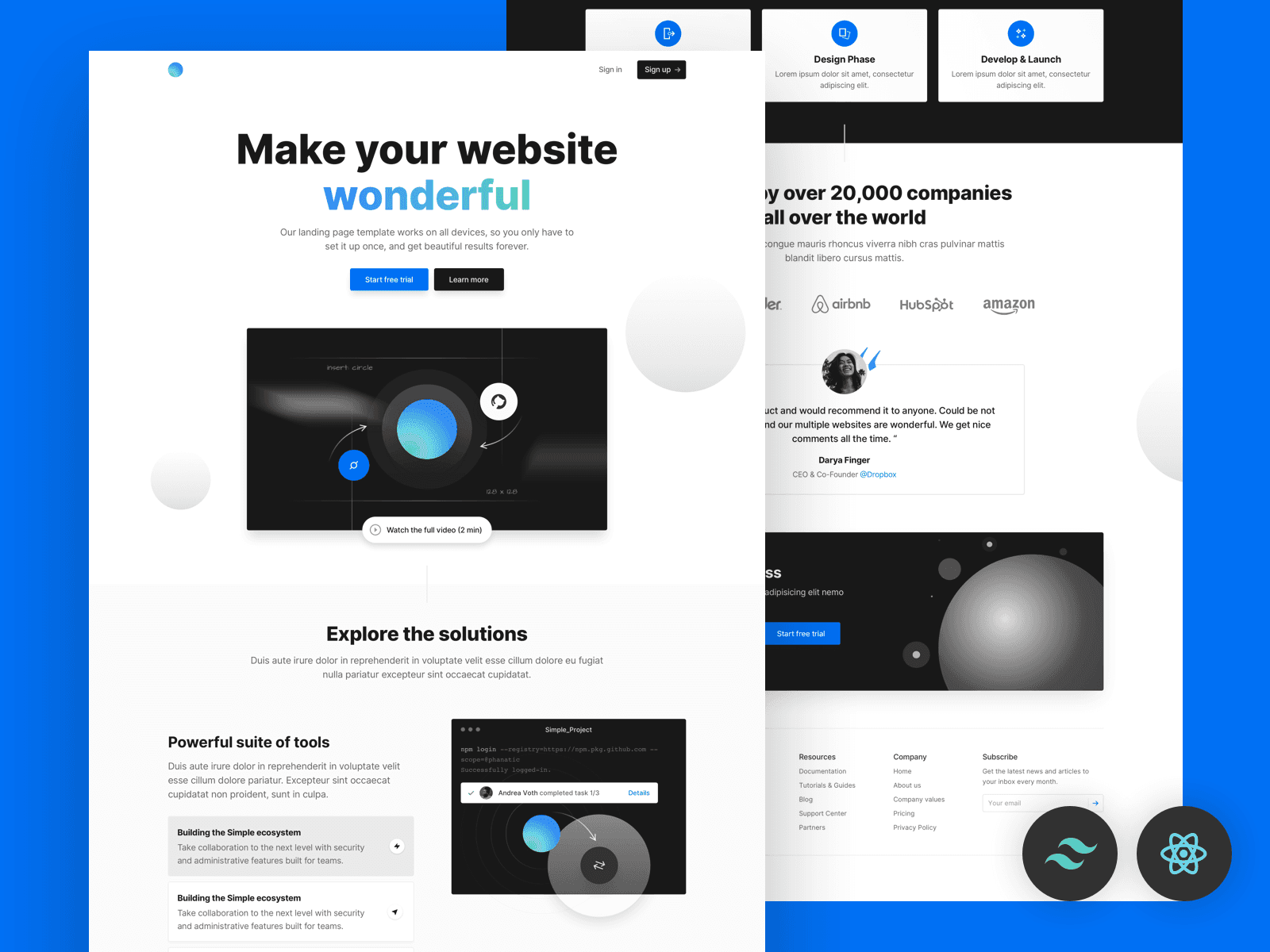 I've also made a Tailwind CSS template and you can check out the live demo: Next JS Landing Page Template Free If you are interested the source code is hosted on GitHub: ixartz/Next-JS-Landing-Page-Starter-Template