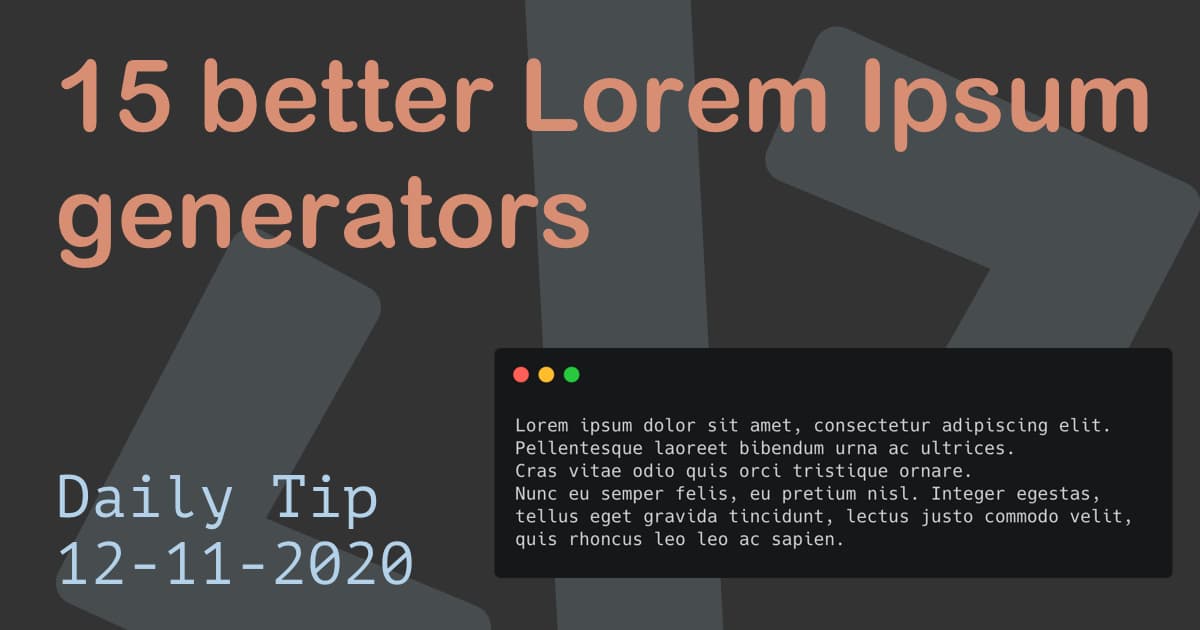 Honestly, who doesn't love Lorem Ipsum generators? They are pieces of Latin text we can use in design mockups or beta applications. It helps to give the application a more real-life look. Lorem Ipsum has been the industries standard replacement text ...