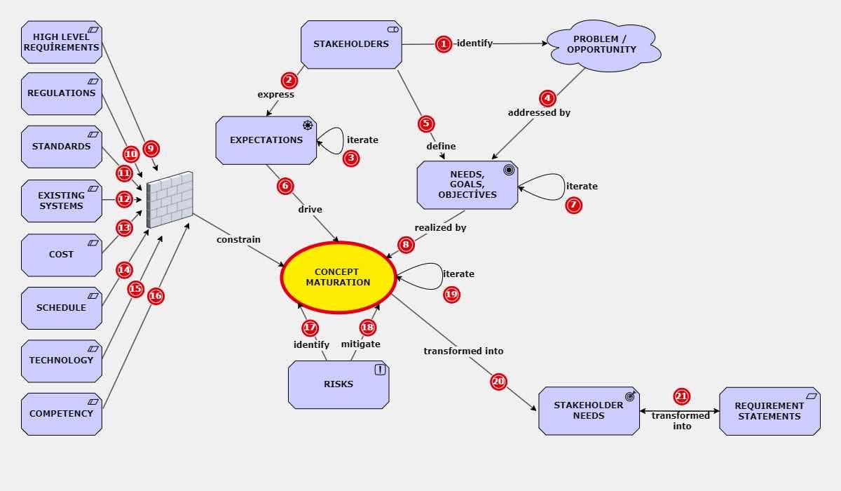These definitions outline a series of steps and interactions that occur within the context of problem-solving or opportunity identification, particularly in the development of a concept or solution. Here is a breakdown of each step: 1) Stakeholders i...