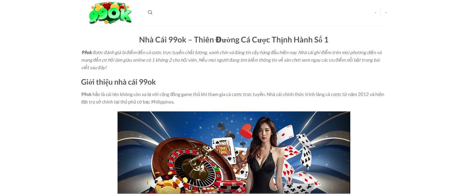 99ok là một sân chơi trực tuyến uy tín, ra mắt từ năm 2012 và đặt trụ sở tại Philippines, được cấp phép bởi PAGCOR. 99ok nổi bật với nền tảng hiện đại, giao diện chuyên nghiệp và bảo mật an toàn, mang đến cho người chơi nhiều trải nghiệm hấp dẫn như ...