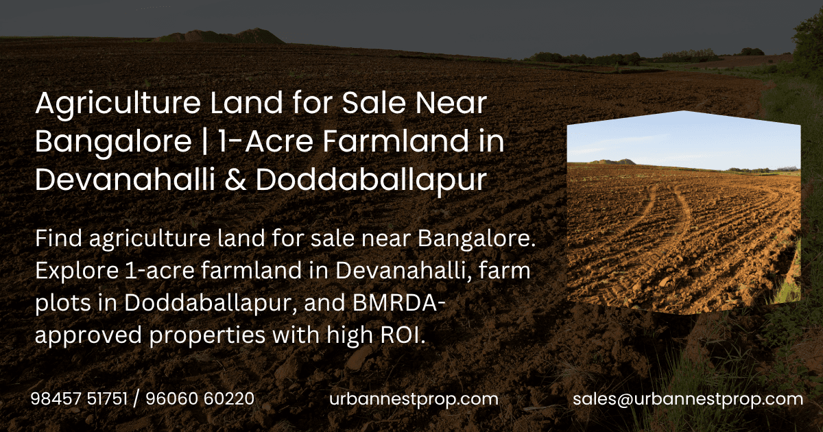 Are you searching for agriculture land for sale near Bangalore? Whether your goal is to build wealth, own a farmhouse getaway, or start organic farming, Urban Nest Properties brings you the best opportunities in Devanahalli and Doddaballapur β two of...