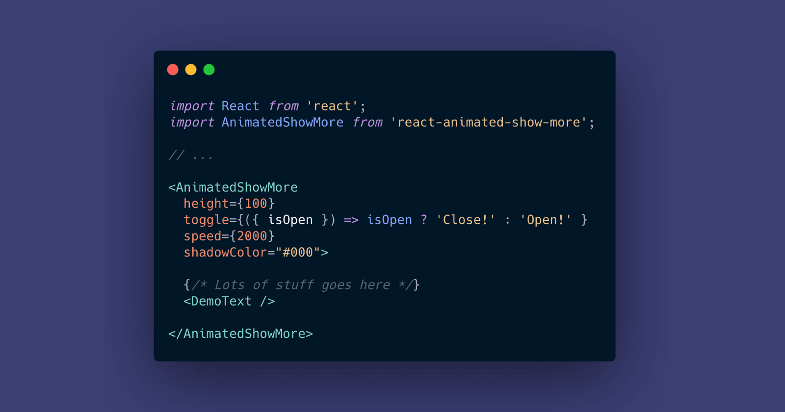 React Animated Show More is a simple, fully-customizable component that expands and collapses to show your content. Why use React Animated Show More? It works! It uses the latest React version which introduces Hooks, and it's awesome! It's well-tes...