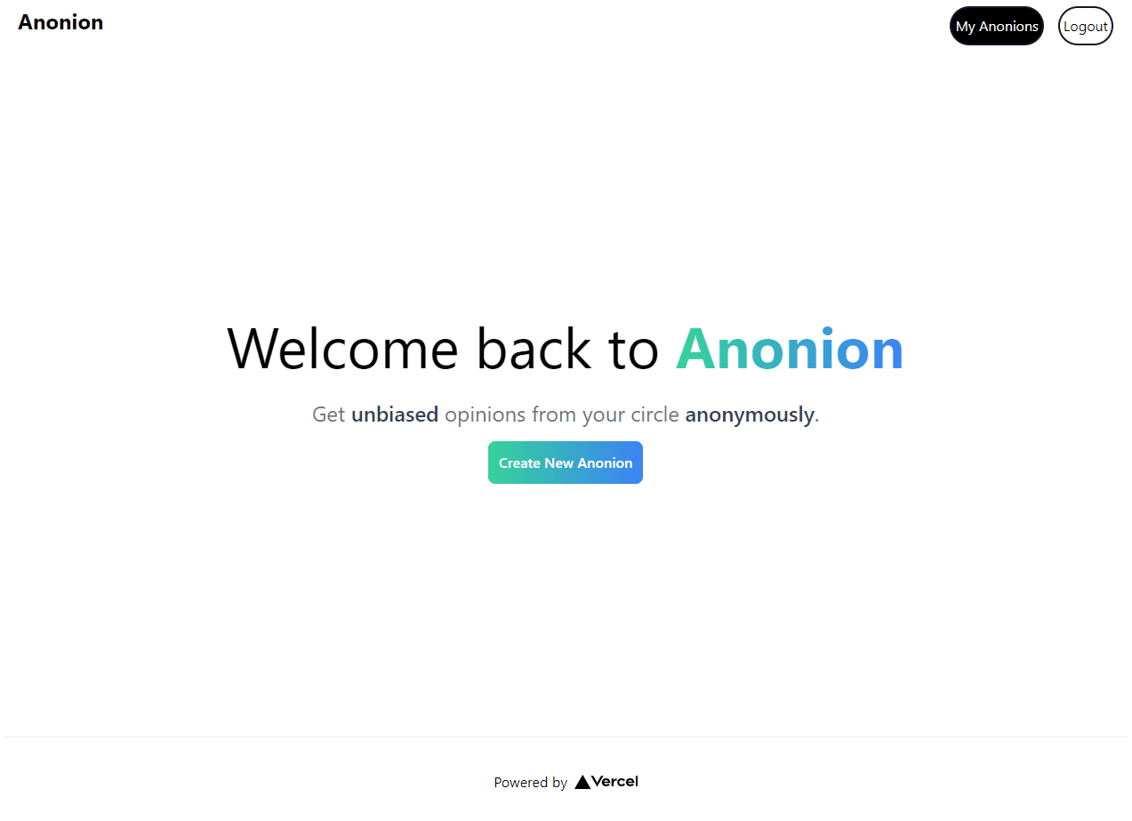 Anonion is an anonymous opinion sharing platform that lets you ask anything to your friends, families, colleagues, etc, and receive responses from them anonymously. People often feel hesitant to say something. We are insecure to share our deep secre...