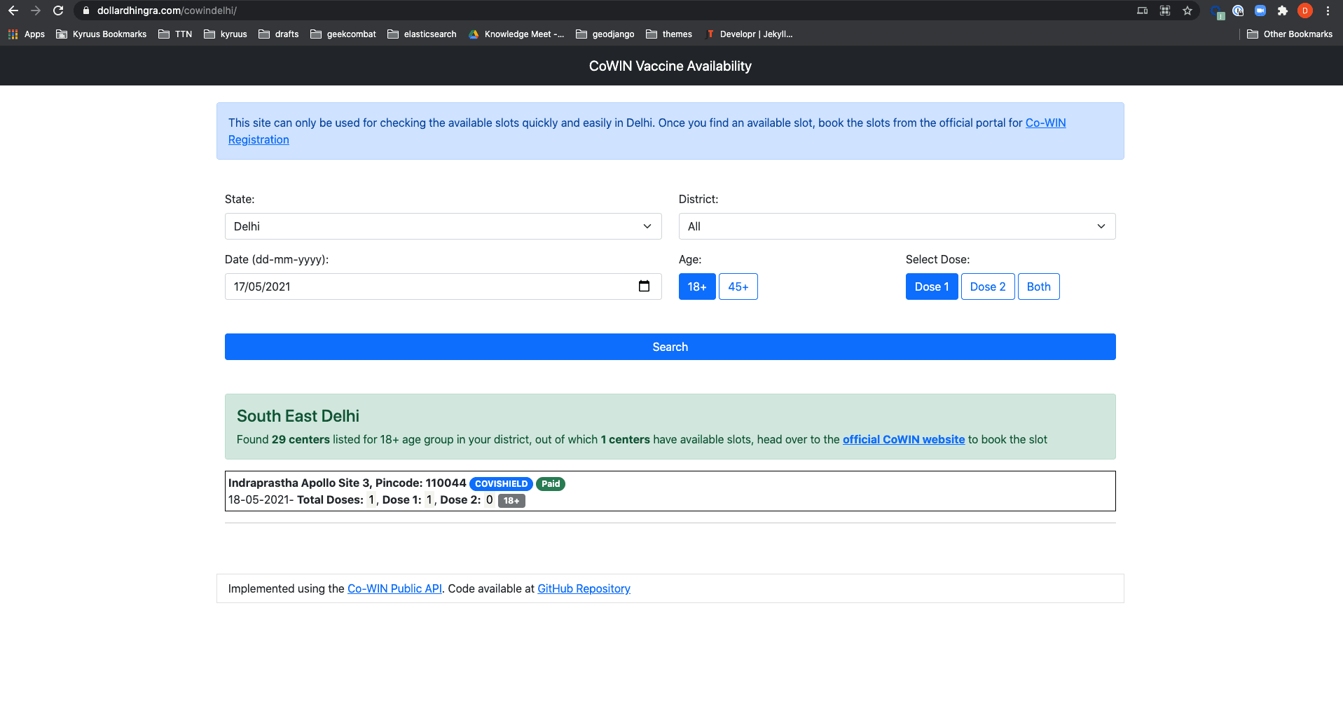 Another CoWIN Vaccine Availability Website
