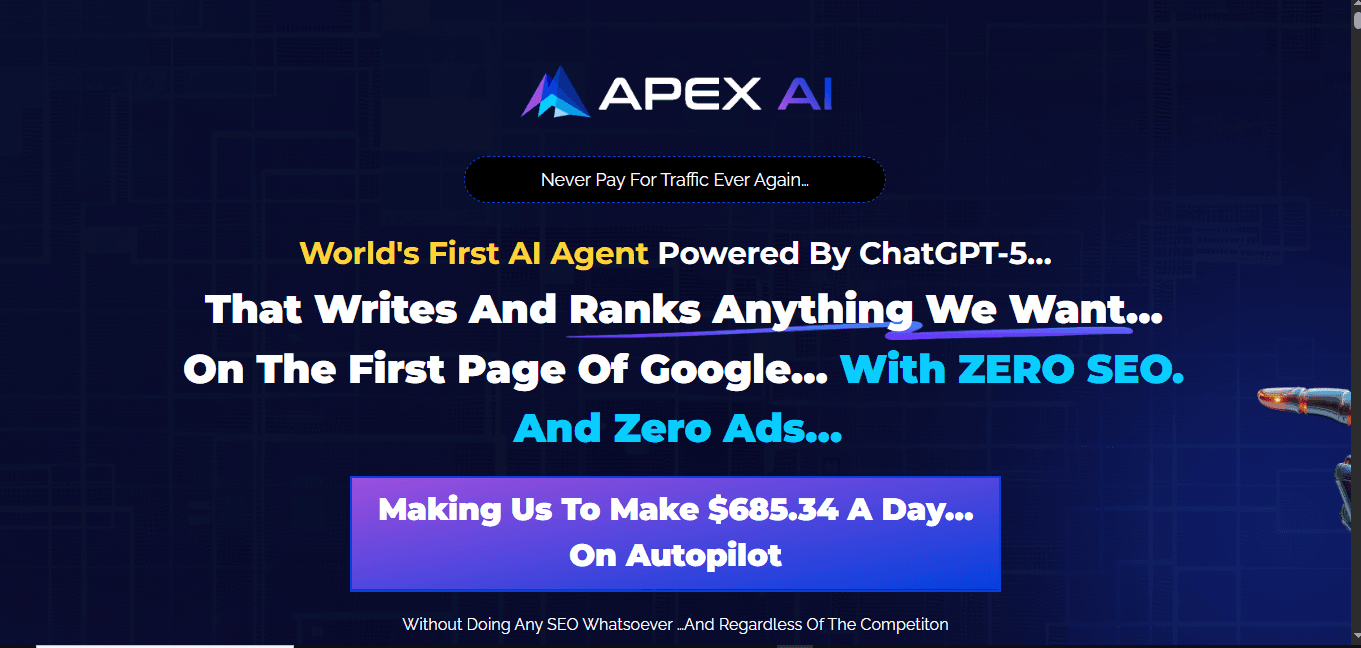 I used to think ranking on Google was hard. You needed backlinks. You needed SEO tools. You needed months of waiting. Then I tried APEX AI. Everything changed. Fast. Easy. No tech skills. Just type. Click. Boom — top of Google. Sounds wild? It did to...