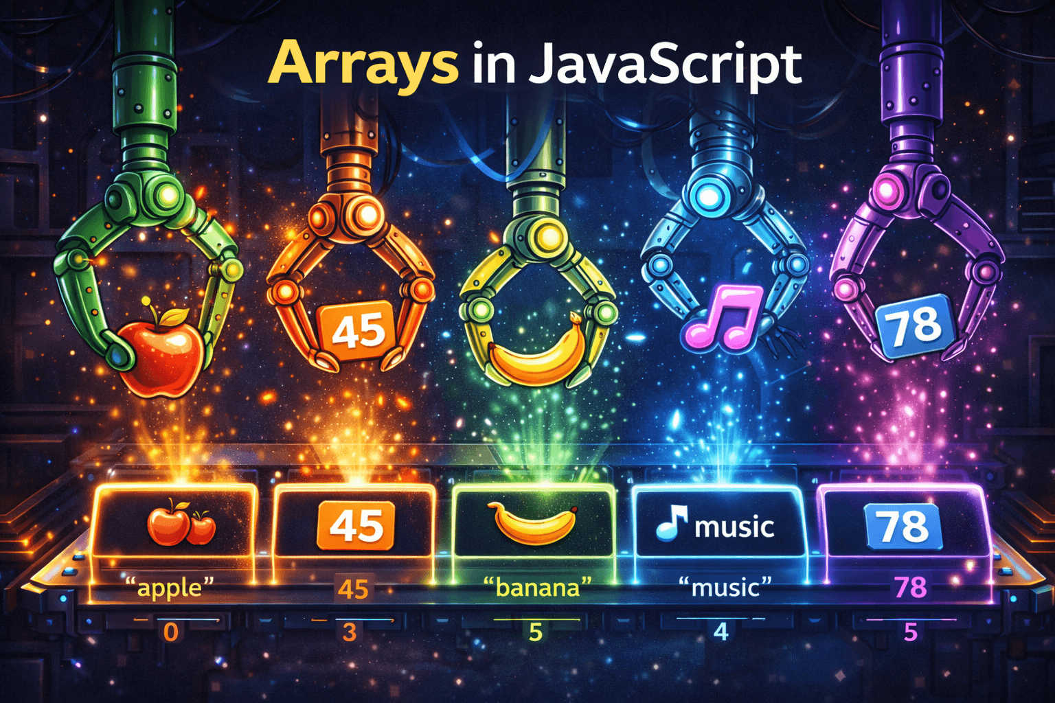 what is array ? used to store an ordered collection (list) of multiple values, known as elements.If you try to use typeof on array you will get object not array . ( willl discuss what method is used t