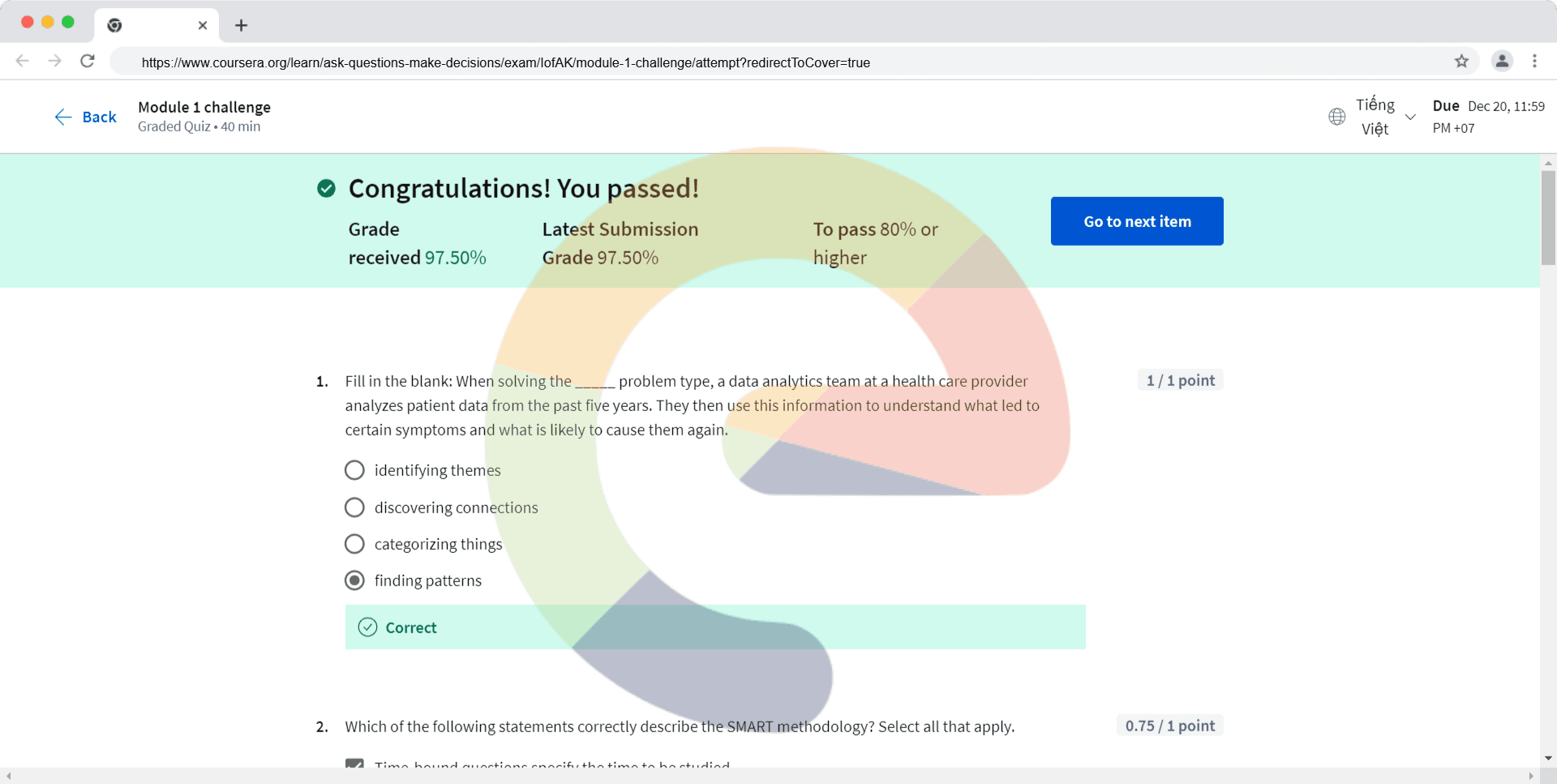 Fill in the blank: When solving the _____ problem type, a data analytics team at a health care provider analyzes patient data from the past five years. They then use this information to understand what led to certain symptoms and what is likely to ca...