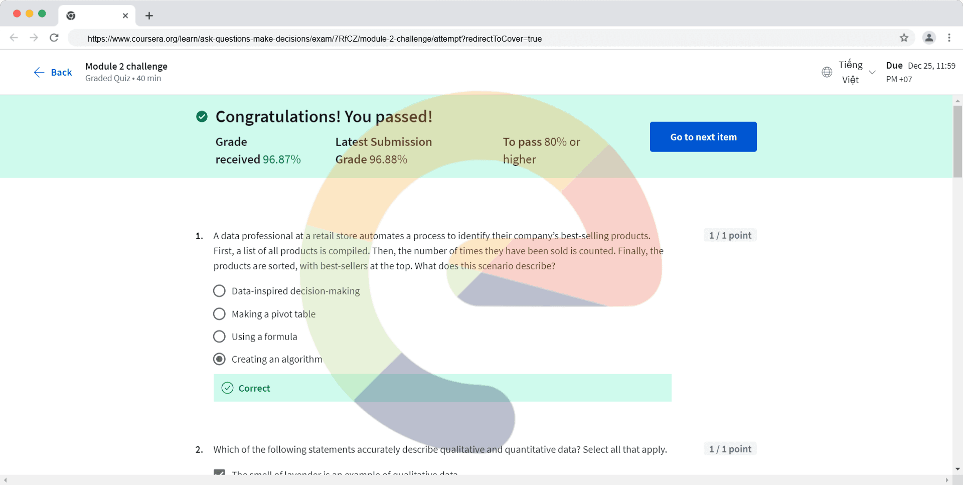 A data professional at a retail store automates a process to identify their company’s best-selling products. First, a list of all products is compiled. Then, the number of times they have been sold is counted. Finally, the products are sorted, with b...