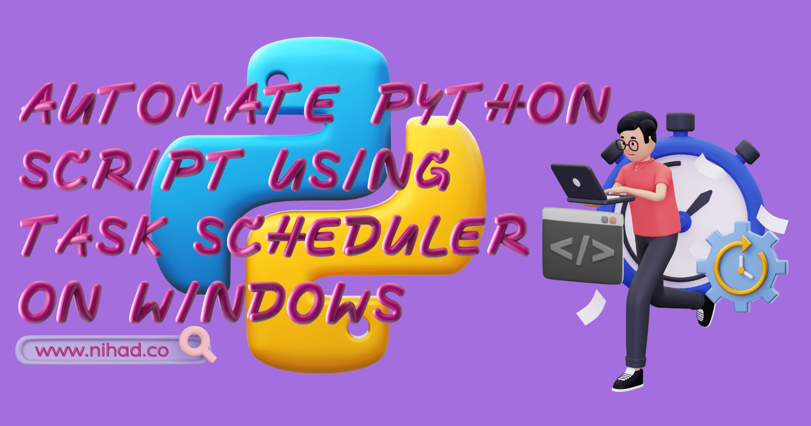 STEP 1: Save python script file as .pyw extension #script.pyw your awesome code goes here... STEP 2: Make python script into a batch file **2.1. **Open notepad. Add the following and save it as .bat extension. start "" "path_to_pythonw.exe" "path_t...