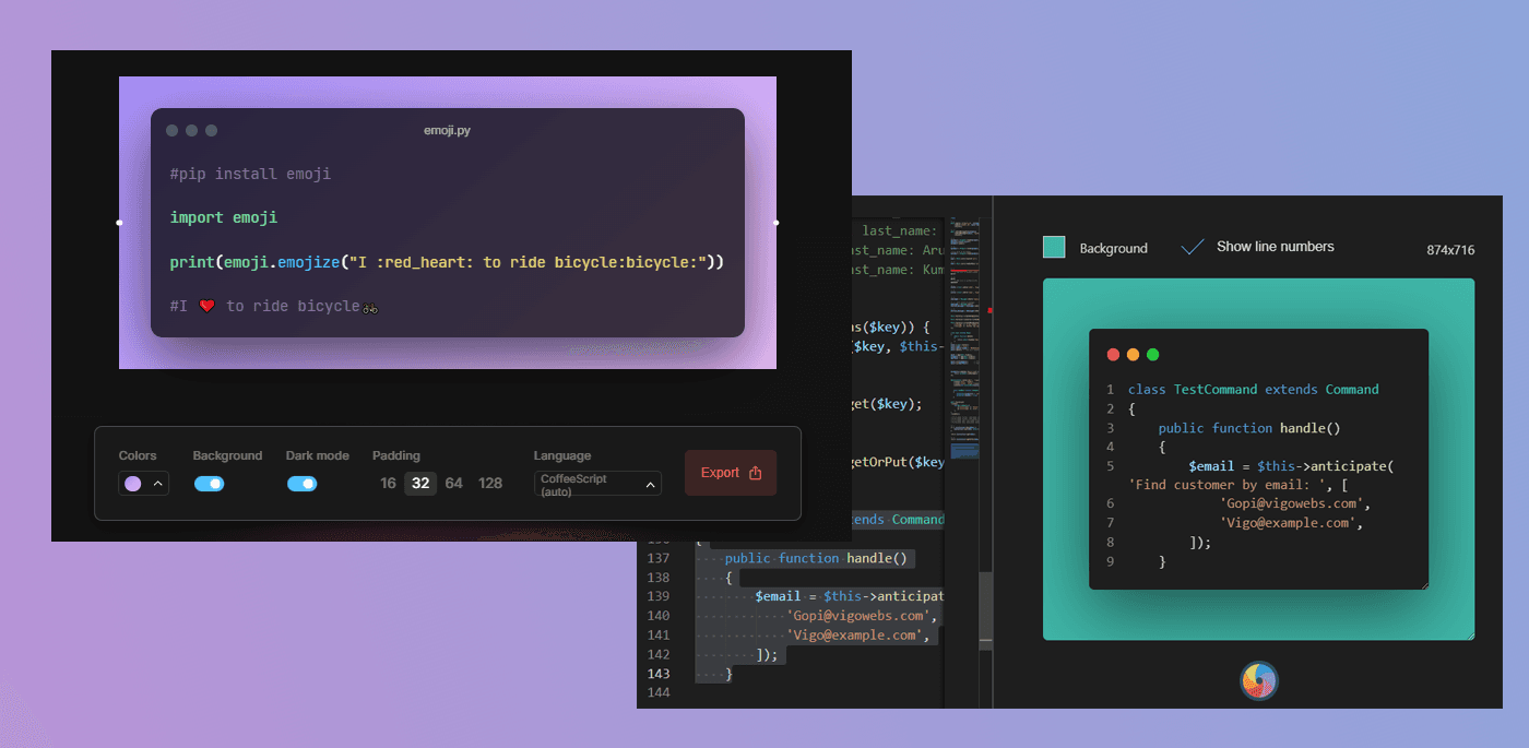 When you are coding, you may want to take a photo of your work to share it in your social media or presentations. Here, I am going to share 5 tools that help you to create beautiful code snippet images.
