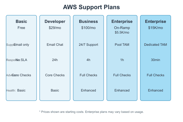 Amazon Web Services (AWS) offers various support plans to meet different business needs and requirements. This guide explains each support plan's features, benefits, and key differences to help you choose the right one for your organization. AWS Supp...