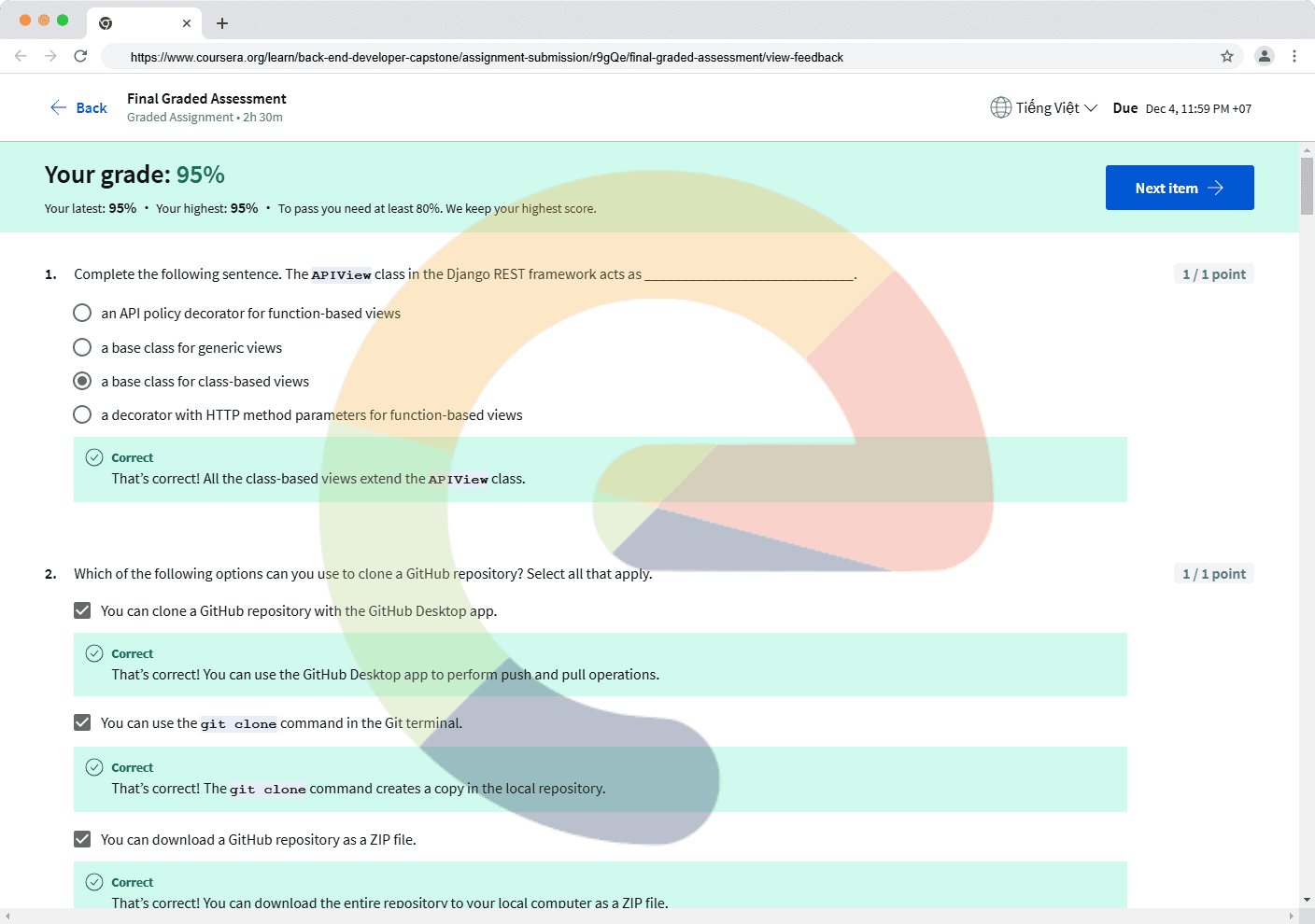 Complete the following sentence. The APIView class in the Django REST framework acts as ____________________________. an API policy decorator for function-based views a base class for generic views a base class for class-based views a decorator w...