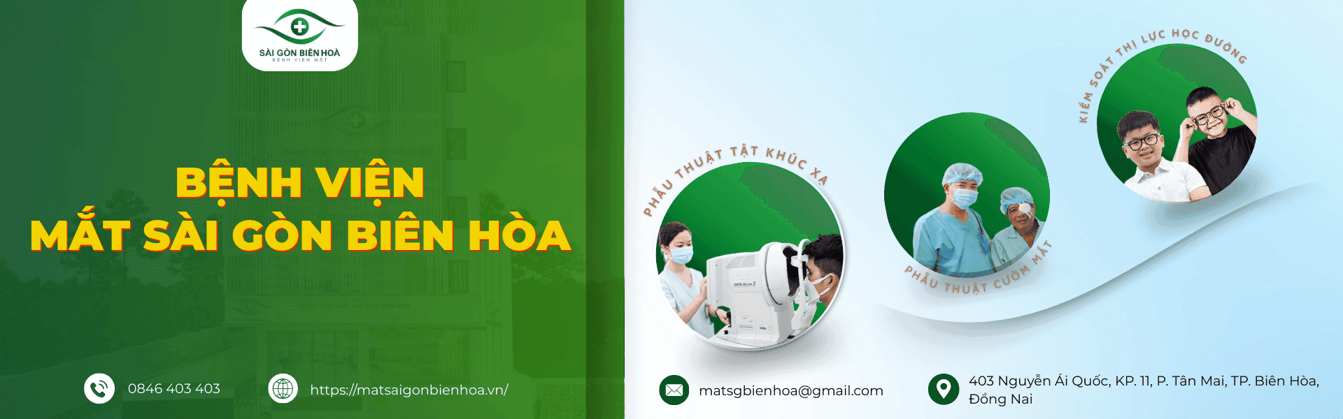 Bệnh viện Mắt Sài Gòn Biên Hòa là trung tâm khúc xạ lớn nhất Đông Nam Bộ, chuyên cung cấp các dịch vụ điều trị toàn diện các bệnh lý về mắt, bao gồm phẫu thuật tật khúc xạ (cận – viễn – loạn), điều trị lác lé, điều trị võng mạc, cườm nước, cườm khô, ...