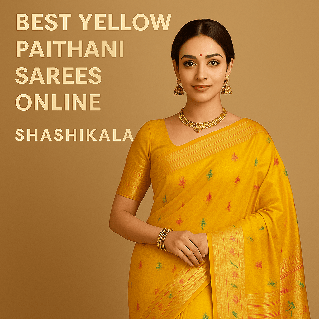 Brighten your ethnic collection with the Best Yellow Paithani Sarees Online from Shashikala. Handwoven with intricate motifs and rich zari borders, these sarees showcase timeless Maharashtrian craftsmanship. Perfect for weddings, festive celebrations...