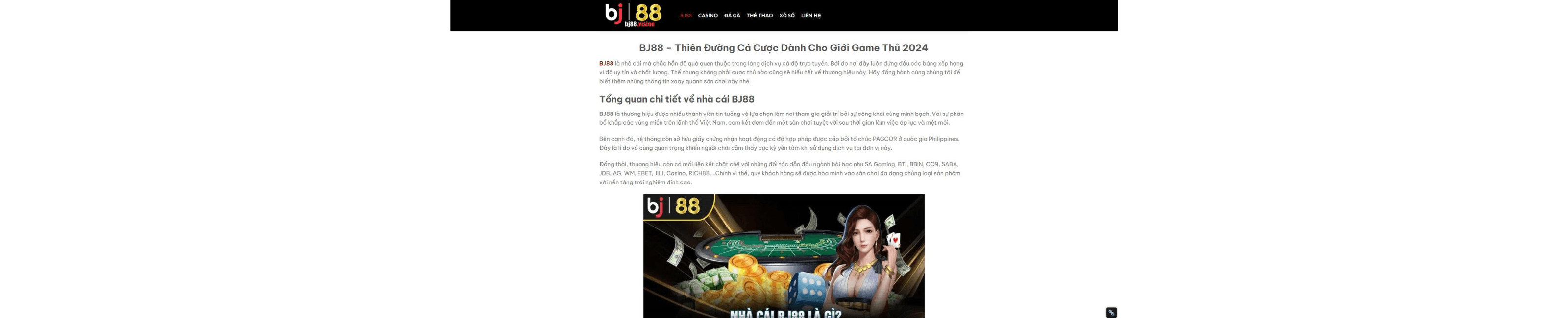 BJ88 là một trong những nhà cái hàng đầu trong lĩnh vực cá độ trực tuyến, được đánh giá cao về uy tín và chất lượng dịch vụ. Với sự công khai và minh bạch, BJ88 thu hút nhiều thành viên tin tưởng tham gia giải trí sau những giờ làm việc căng thẳng. Đ...