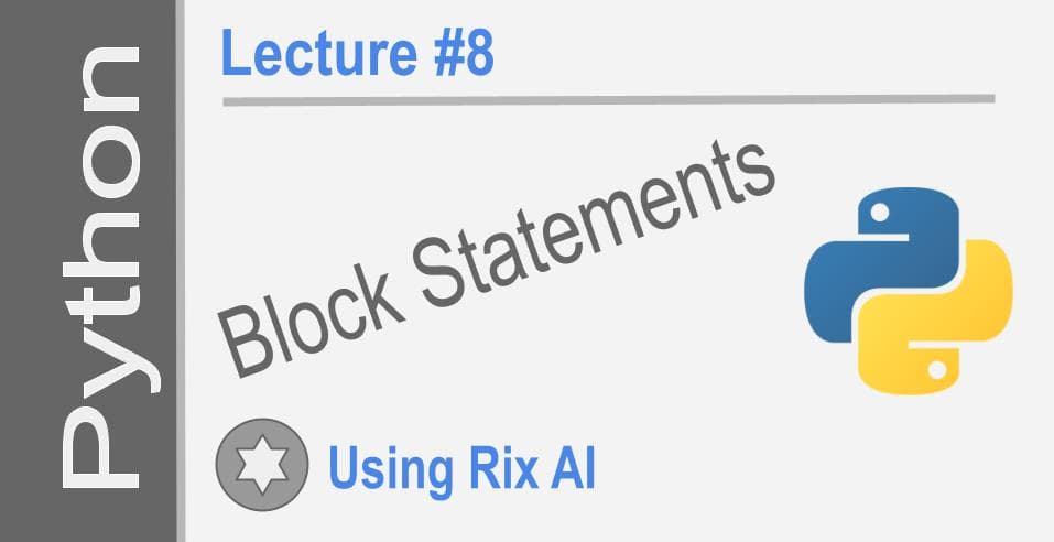 Block statements in Python are created with one or more keywords. Consist of one or several statements indented. All indented statements belong to the block statement. The execution of indented statements is controlled by a condition of a control var...