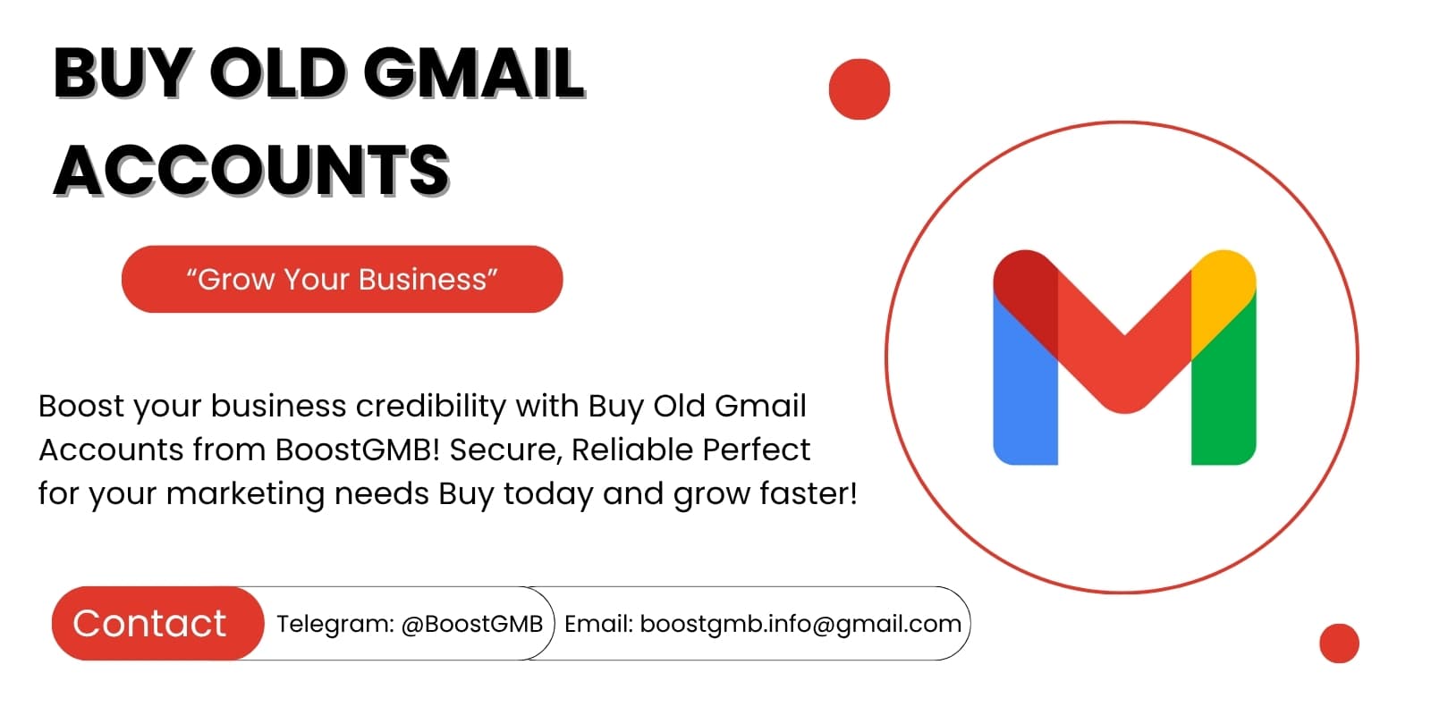 Get Old Gmail Accounts With premium old Gmail accounts from BoostGMB.com, you can open up new doors. Our accounts have been carefully checked and come with a history you can trust. This lets you get around common email restrictions and easily improve...