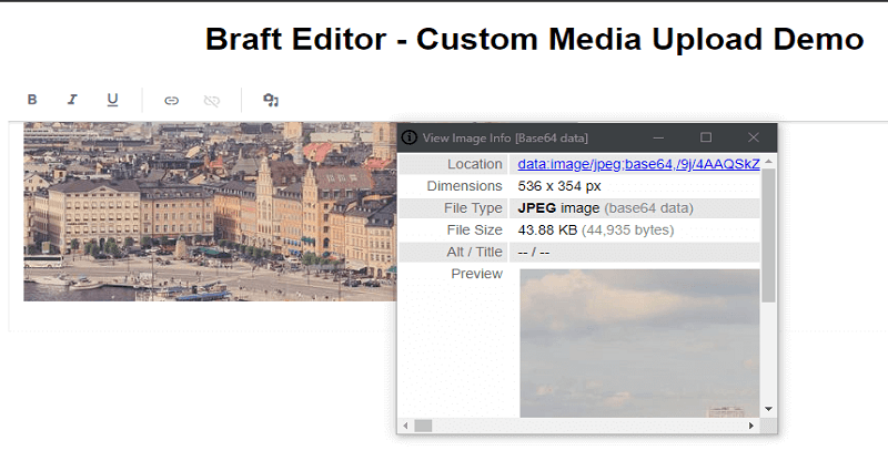 Braft Editor - Custom Media Upload Function Introduction In this article I am going to show you how to implement custom upload and validation function for media upload in Braft Editor. Braft Editor is a web rich text editor based on draft-js, suitab...