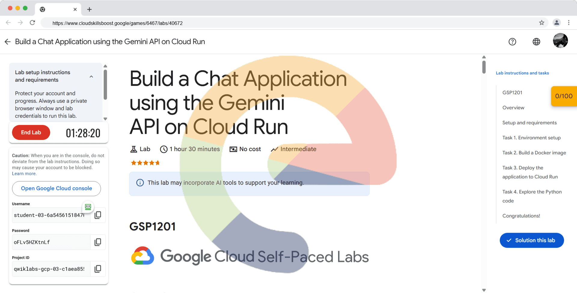 Overview This lab demonstrates how to create and deploy an AI-powered chat application using Cloud Run on Google Cloud. The chat application is powered by the PaLM 2 Chat Bison Large Language Model's (LLM) (text-chat) APIs. You will leverage the APIs...