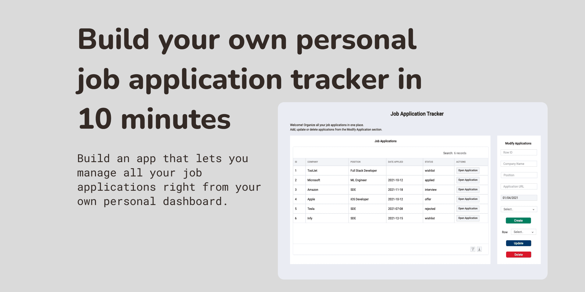 In this article, you'll learn to build an app that will let you manage all your job applications right from your own personal dashboard.