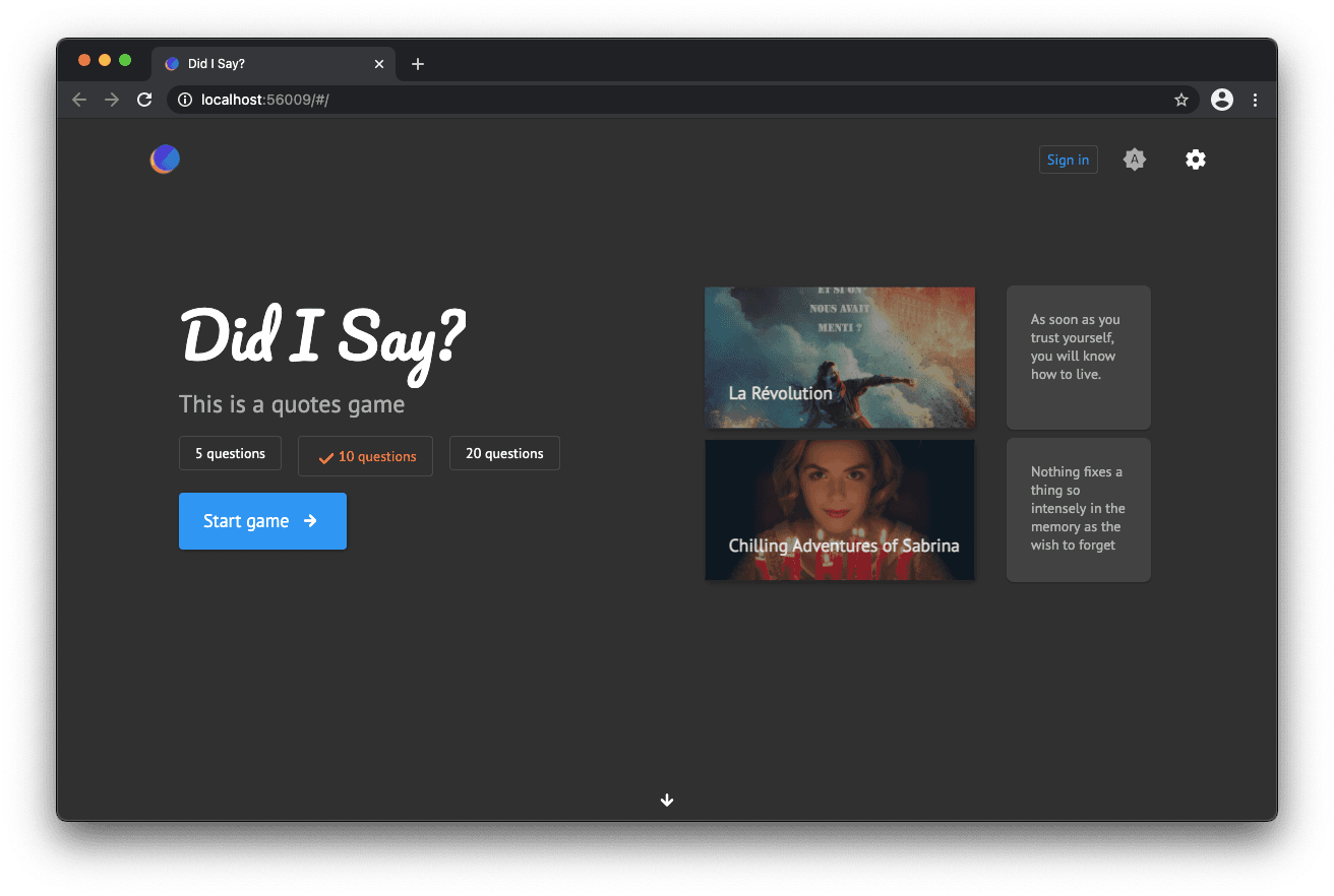 Hi, I built a quotes game for the Hashnode & Vercal hackathon. Disclaimer: You may find bugs in this product as it is still in beta Vercel app GitHub The goal is to score the maximum of points on a series of questions. Each round asks you to choose...