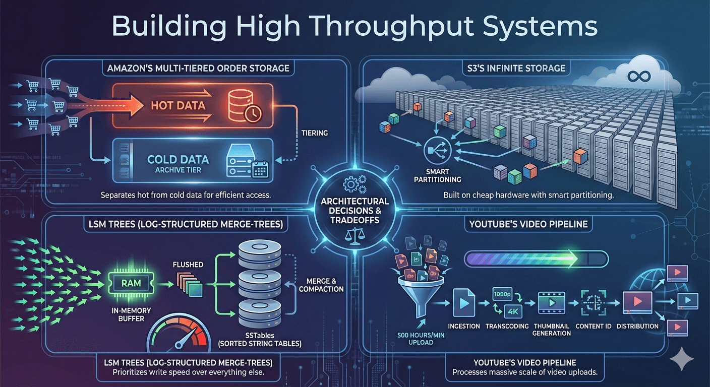 High throughput isn't achieved by throwing more servers at the problem, it's earned through architectural decisions that align with how data is actually accessed and used. In this exploration, we'll dissect four systems that handle massive scale: Ama...