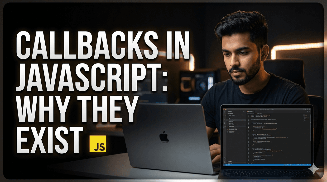 What is a Callback Function A callback function is simply:A function that is passed as an argument to another function and is executed later. In simple words: “Function ke andar function bhejna, aur b