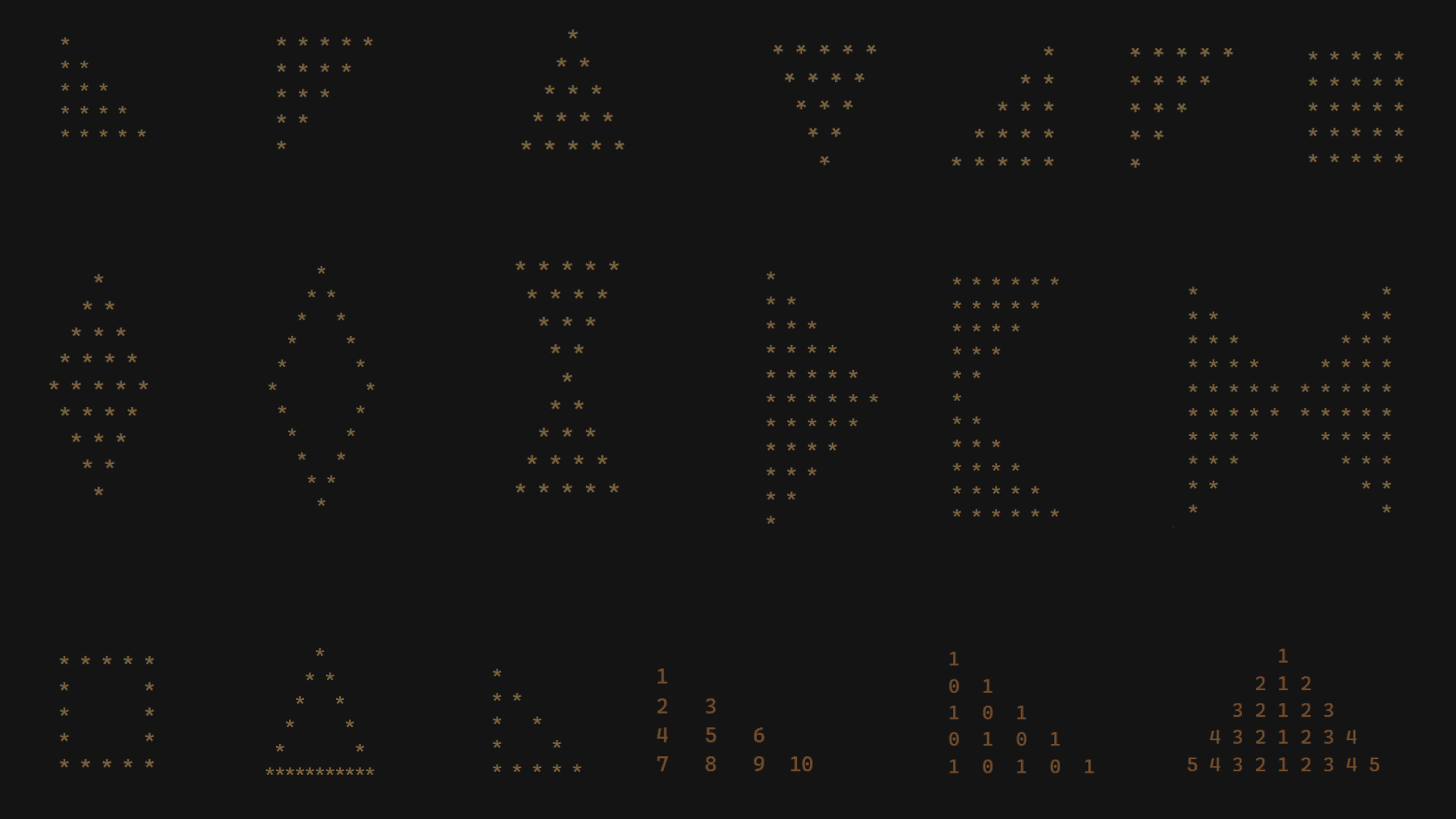 Basics Learning how to print a row & a column is very important for any pattern program. 1.Printing a row Printing a new line so that every row is printed in a new line for(int row=1;row<=n;row++){ printf("\n"); } 2.Reverse printing a row Prin...