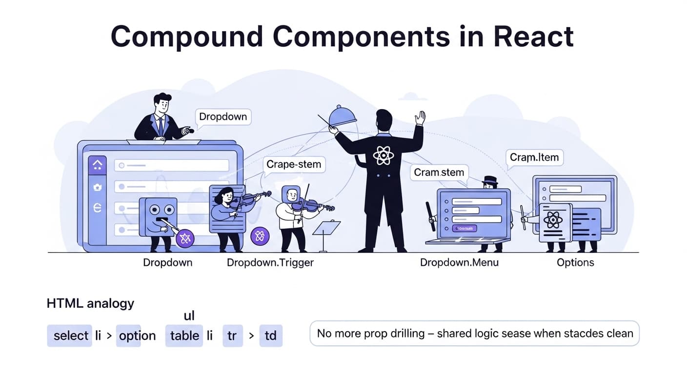 Compound components are one of the most powerful and elegant patterns in React. They allow developers to build complex, flexible UI elements with a clean and intuitive API. If you've ever felt the pain of managing state across different components or...