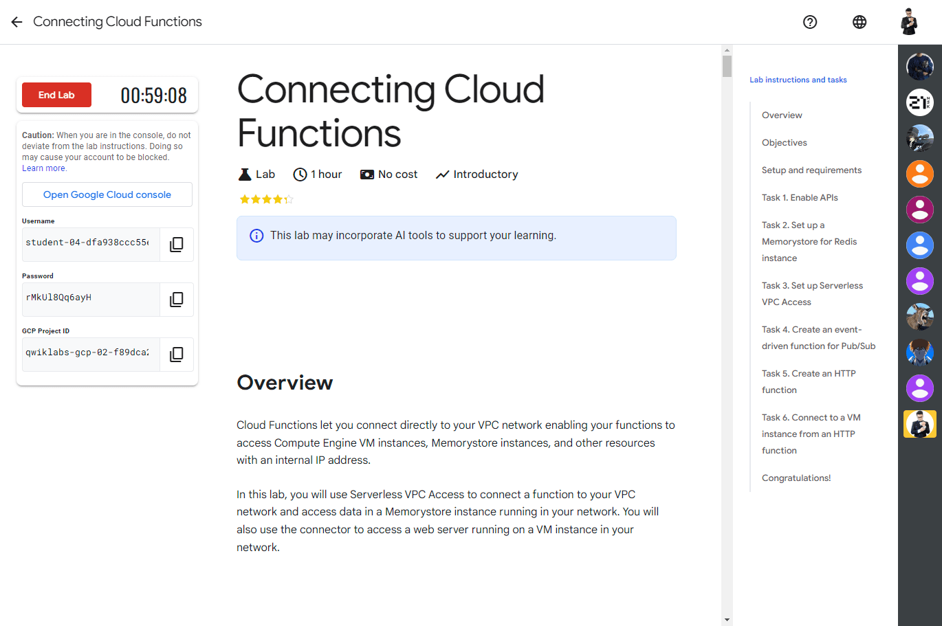 Overview Cloud Functions let you connect directly to your VPC network enabling your functions to access Compute Engine VM instances, Memorystore instances, and other resources with an internal IP address. In this lab, you will use Serverless VPC Acce...