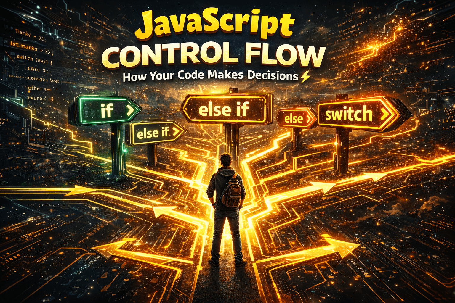When you write JavaScript, your code doesn’t always run top to bottom in one straight line. Sometimes the program needs to make decisions: Should this code run? Should another block run instead? Wh