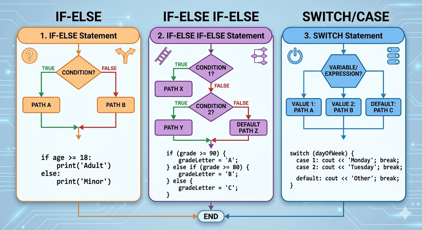 Have you ever wondered how your code makes decisions? How a program knows to say "Good morning" before 12 PM and "Good afternoon" after? This is all thanks to control flow. In programming, control flo