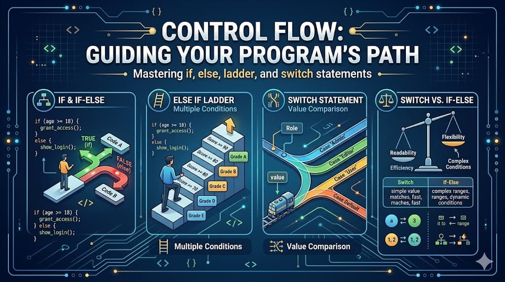 When we write programs, we often need the computer to make decisions.Sometimes we want different code to run depending on a condition. For example: If a user is logged in, show the dashboard. If a s
