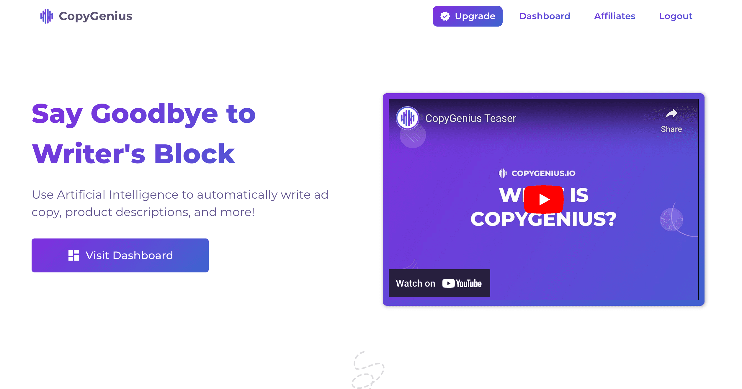 Say Goodbye to Writer's Block. Use Artificial Intelligence to automatically write ad copy, product descriptions, and more! Product Description In one click, generate beautifully written product descriptions to increase sales. Facebook Ad Copy CopyG...