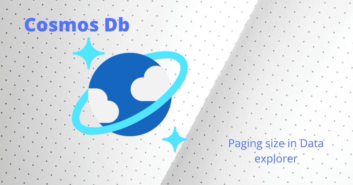 I wasn't aware that the paging size in the Cosmos Db Data explorer can be configured. So it was able to increase the page size from 100 to 1000, Settings The settings gear opens a configuration dialog: The dialog with Page options Enable cross-par...