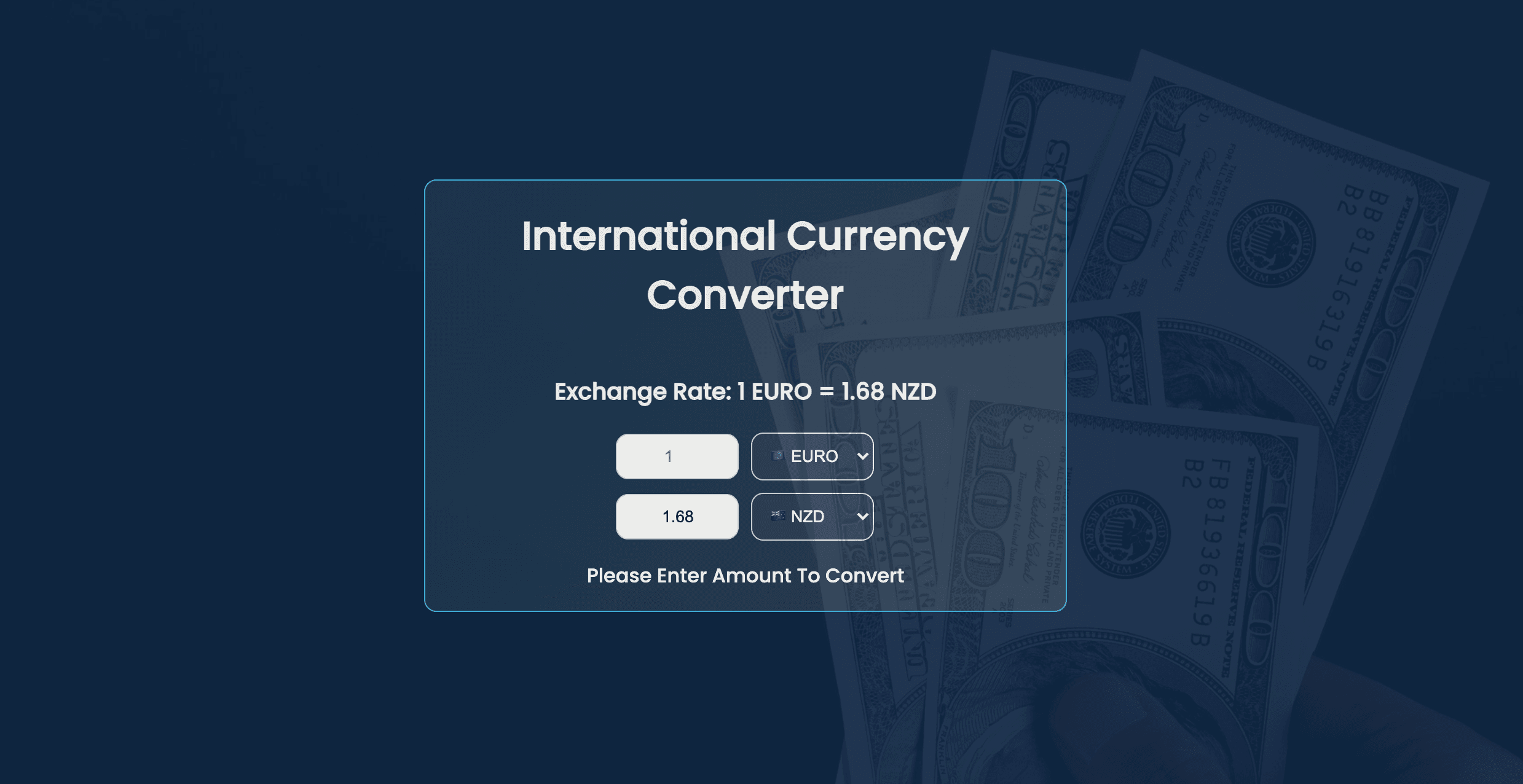 Create A Currency Convertor Using HTML, CSS & Javascript.