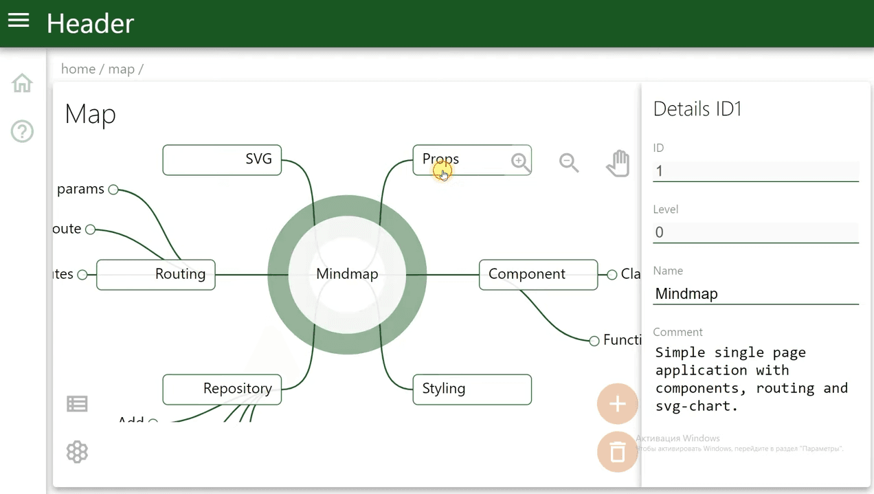 Let’s create a React single page application. The application to remember how to create React applications. One of the best ways to remember something is to create a mind-map. A mind-map is a chart with a hierarchy of keywords or topics. Big topic is...