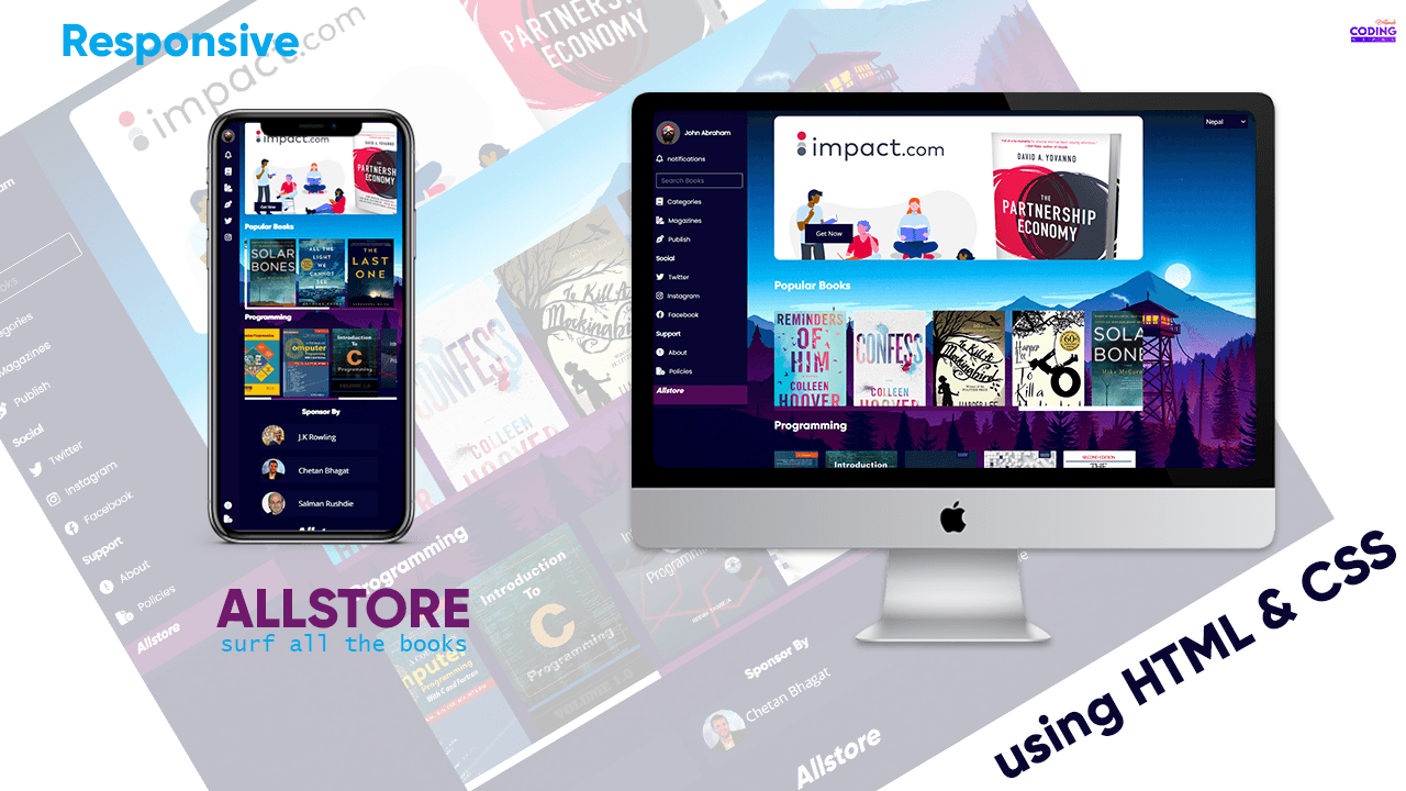 Reponsive Book Store Web Design Reponsive Book Store Web Design is the interesting Project for a beginners in CSS. Using HTML and CSS Learn create the best UI/UX Design. Through this you will learn flexbox, position, Webkit and also to make the Websi...