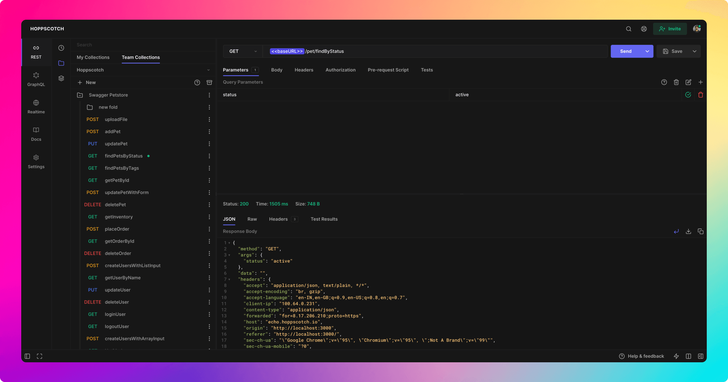 Hoppscotch is an open-source API development ecosystem.