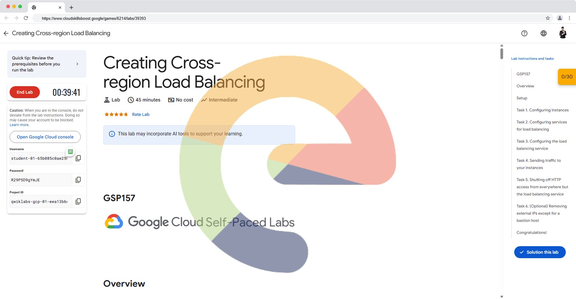 Overview This lab demonstrates how to create an HTTP(S) load balancer that forwards traffic to instances in two different regions. In this lab you create four Compute Engine instances, two each in two different regions. You then configure the rest of...