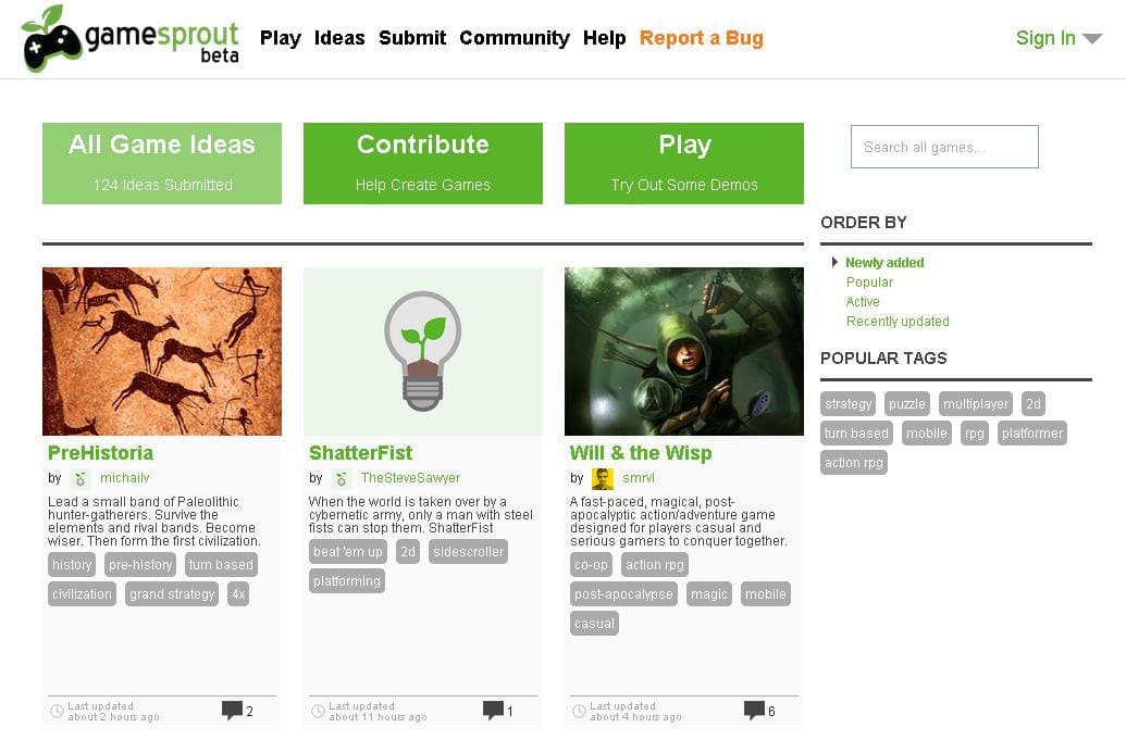 GameSprout offers a chance for everyone to make games.