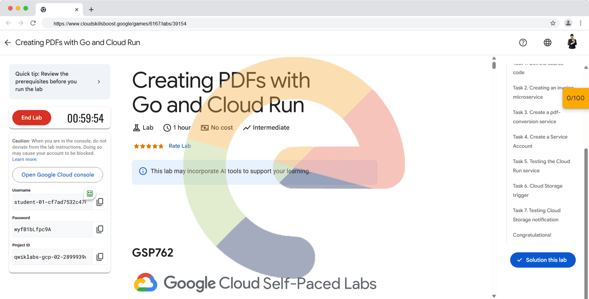 Overview In this lab you will build a PDF converter web app on Cloud Run, which is a serverless service, that automatically converts files stored in Google Drive into PDFs stored in segregated Google Drive folders. Objectives In this lab, you will: ...