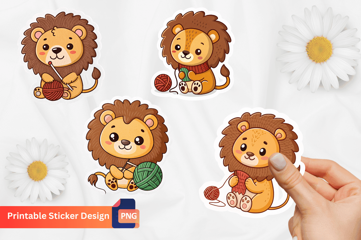 Cute Lion Knitting Sticker: π Check out Cute Lion Knitting Sticker now! Explore this π printable illustrations and claim your π free download here. Let's start crafting together! π Cute Lion Knitting Sticker Sticker design involves creating attra...