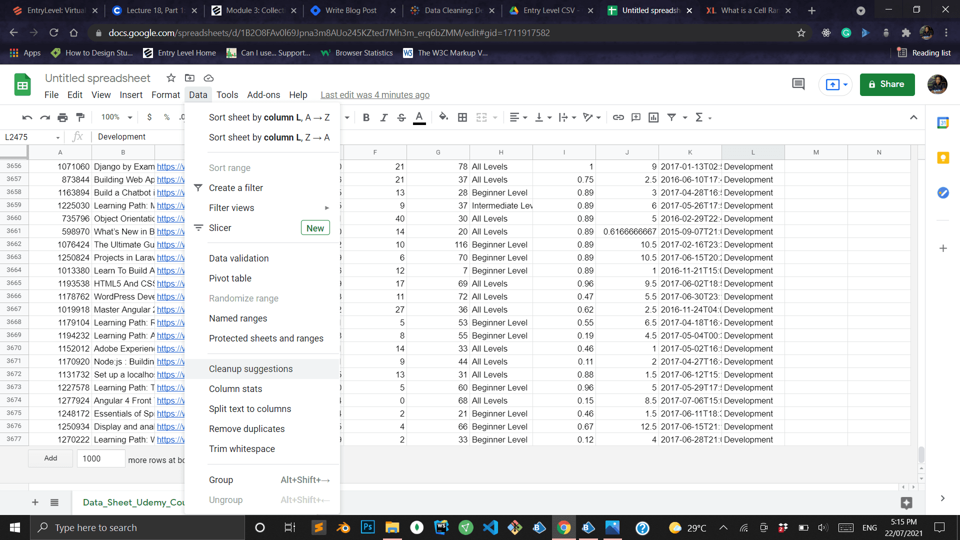 Data Import and Basic Cleaning With Google Sheets