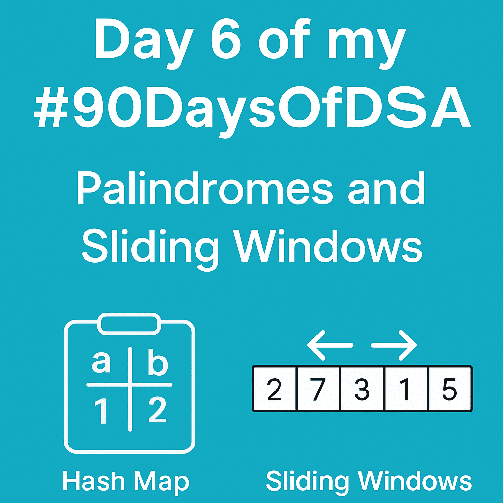 π Date: May 26, 2025π·οΈ Tags: DSA, Python, LeetCode, Sliding Window, HashMap π Hello Devs! Welcome back to my #90DaysOfDSA journey. On Day 6, I focused on solving problems that involve string pairing and sliding window techniques β both of which a...