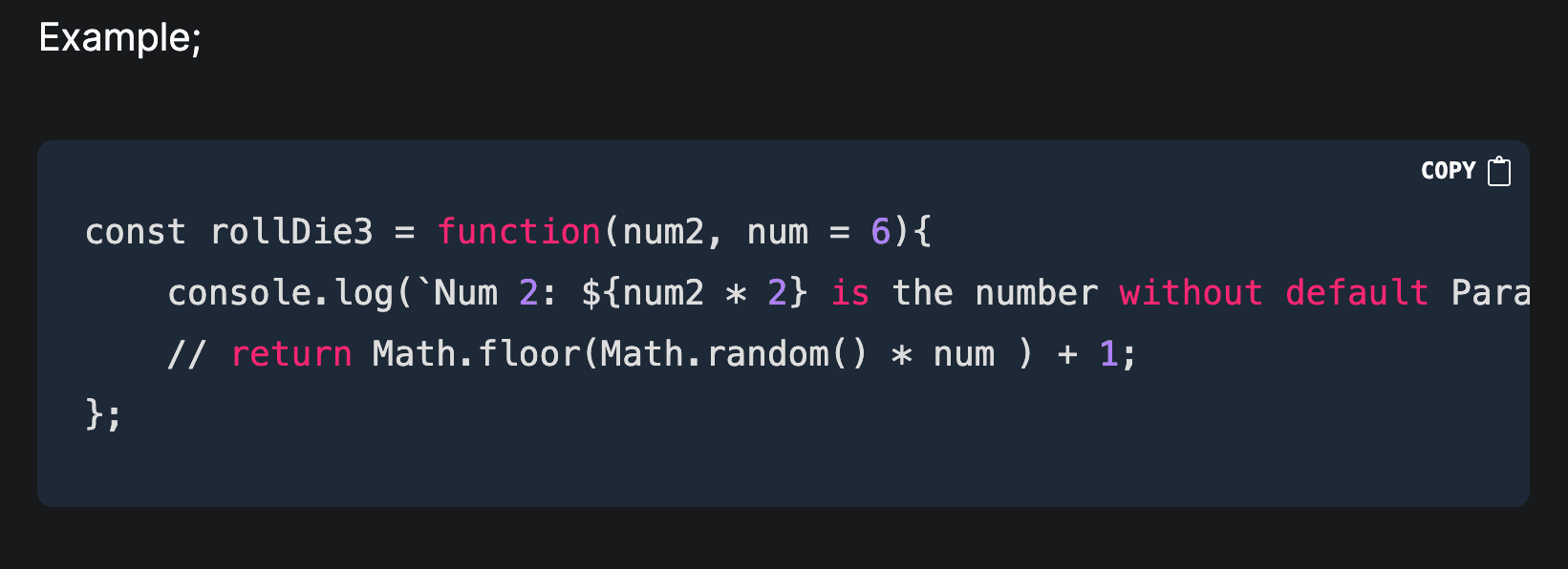 Example, We would create a rollDie function that would by default accept a num;